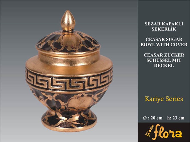 Zucker Schüssel CEASAR mit Deckel in antikem Design, Bronze/Gold Ø ca. 20cm