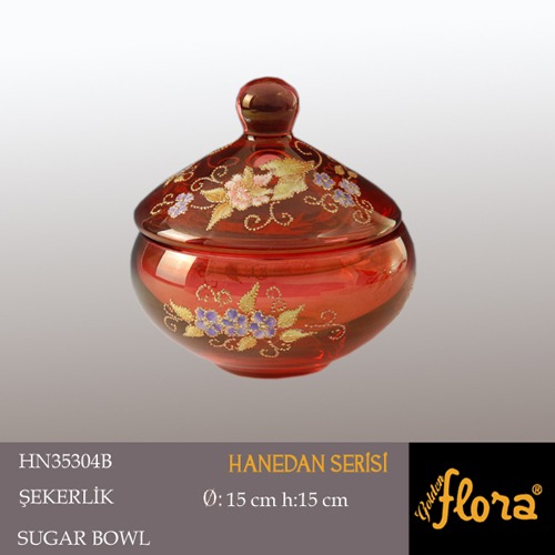 Zucker Schüssel CEMRE mit Deckel in Rot mit hübschen Verzierungen Ø ca. 15cm