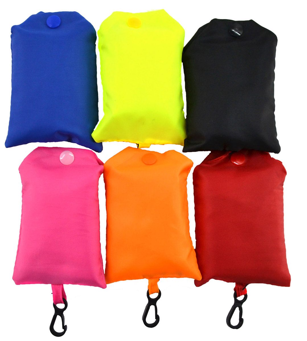Einkaufstasche faltbar Uni mit Clip 6 Farben 47 x 54 x 4 cm 15 Stück schwarz, je 9 Stück hellblau, rot, hellgrün, pink, orange Hangtag