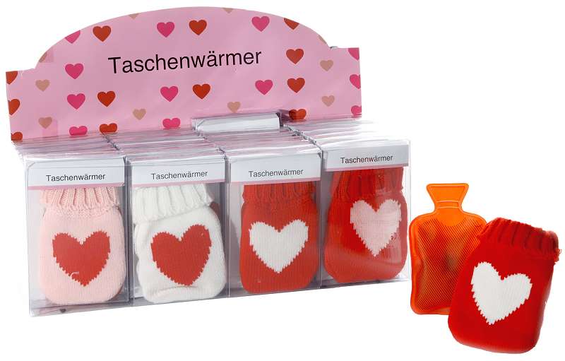 "Handwärmer Taschenwärmer mit Hülle ""Herz"" 4-farbig sort.ca.7,5x12,5cm im Dsp"