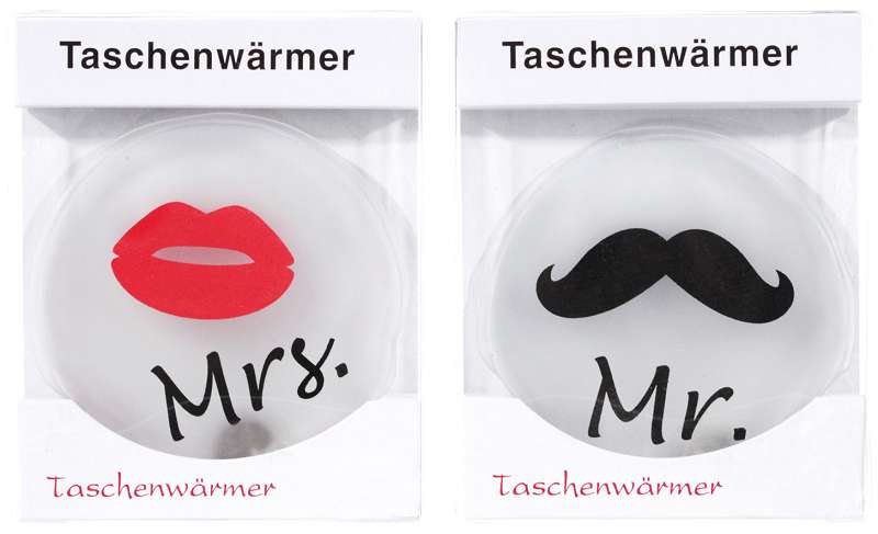 "Handwärmer Taschenwärmer ""Mr.&Mrs."" 2-fach sort.ca.10x12cm"