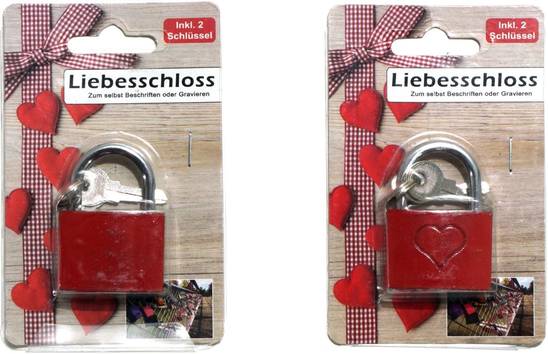Liebesschloss mit 2 Schlüsseln ca.5,5x4cm 2 Designs auf Blisterkarte