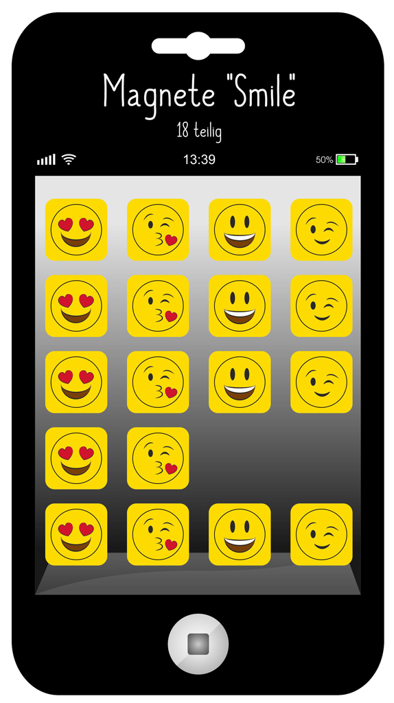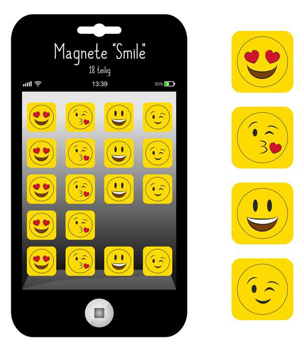 VE:4 Magnete "Smile", 18tlg, 2cm d Magnete, 4 sort. Smile Motive, 18 Stück auf Blisterkarte preis pro Blister
