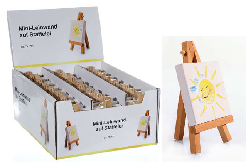VE:45 Mini Holz Leimwand mit Staffelei ca. 7x7cm im 45er Farb Dsp.