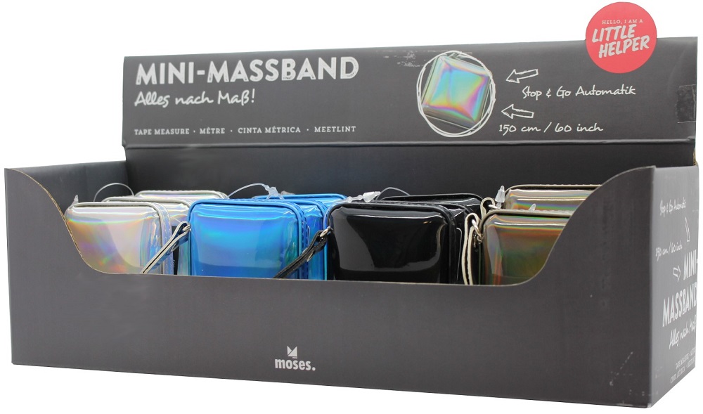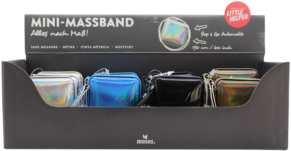 Mini Maßband Little Helper 150cm im 12er T-Dsp. 4/s (blau, braun, schwarz, silber)