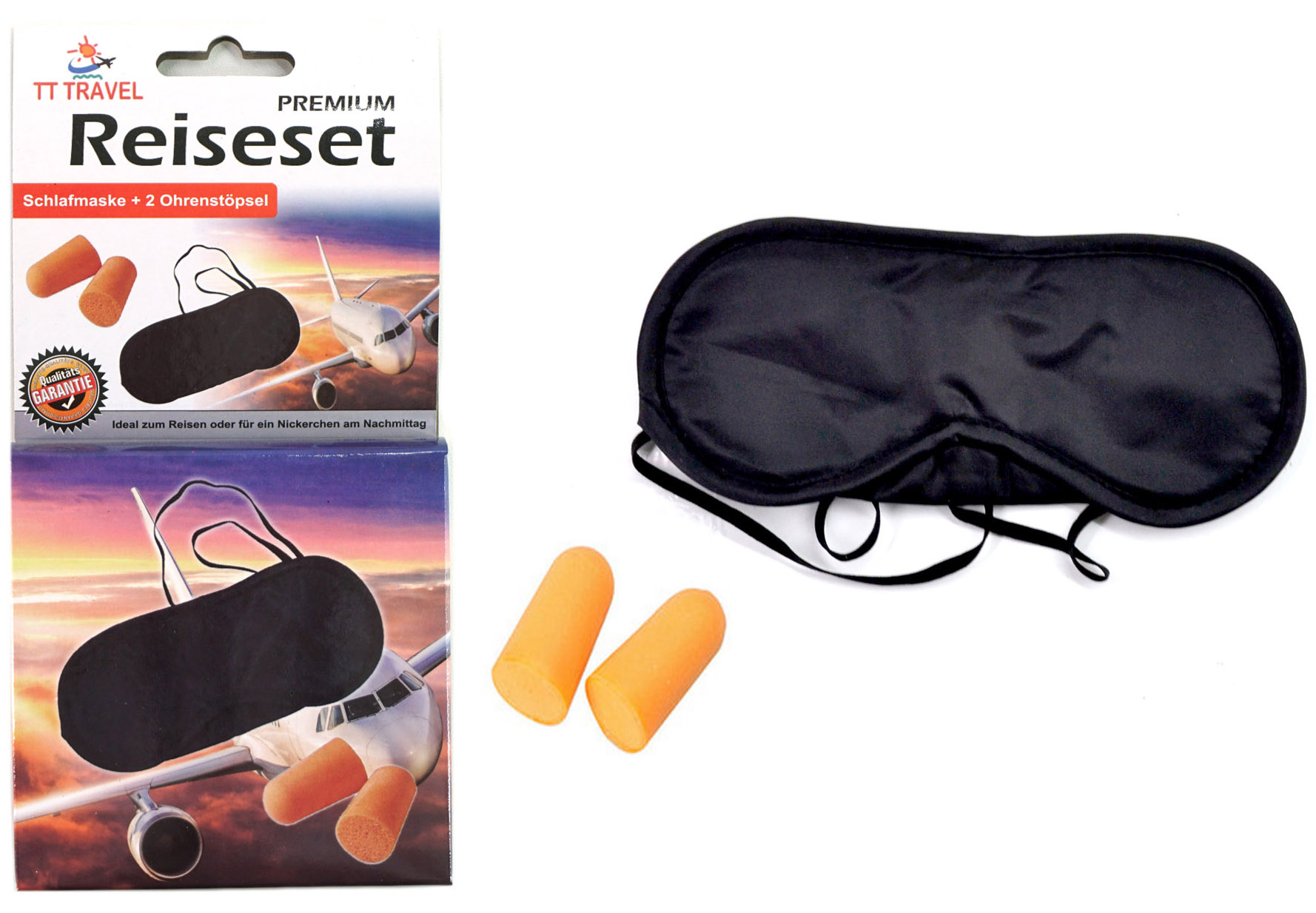 Schlafmaske + Ohrenstöpsel Reiseset Farbbox