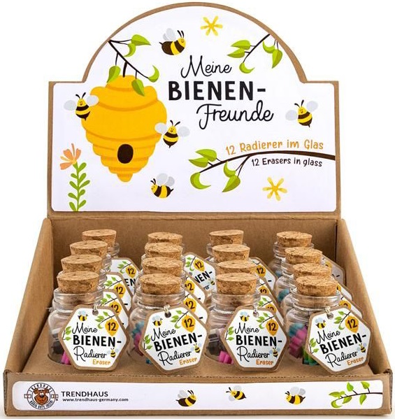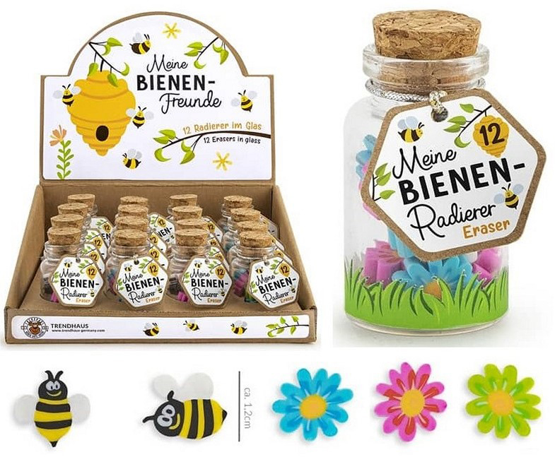 TRENDHAUS Meine Bienen-Freunde - Mini-Radierer im Glas (Bienen und Blumen) ,12er T-Dsp.(956958)