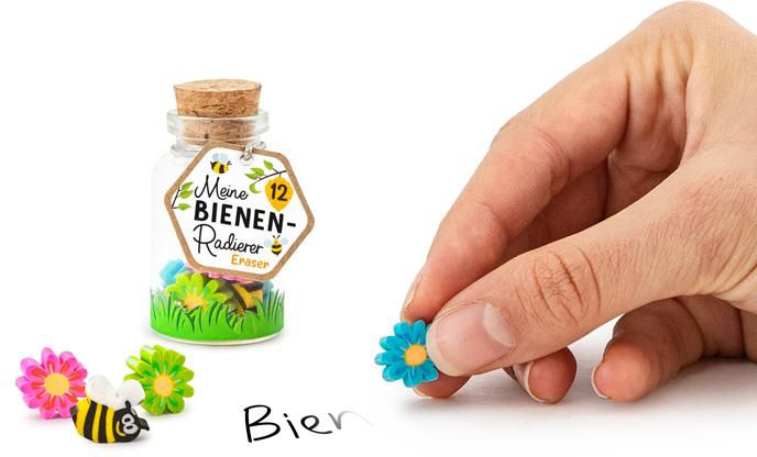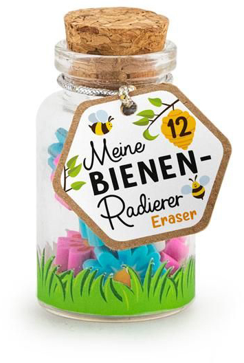 TRENDHAUS Meine Bienen-Freunde - Mini-Radierer im Glas (Bienen und Blumen) ,12er