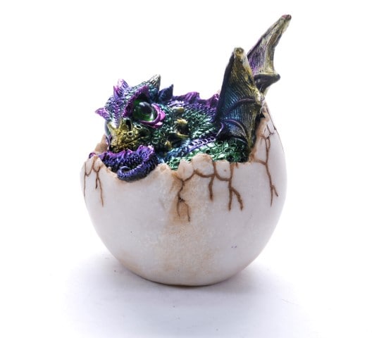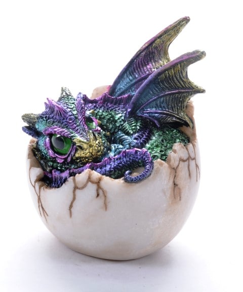 Drachenei mit kleinem regenbogenfarbenem Drache Polystone Figur 9 x 8 cm