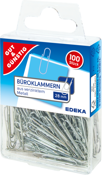 Büroklammern 28mm Papierklammern aus verzinktem Metall 100 Stk. G&G