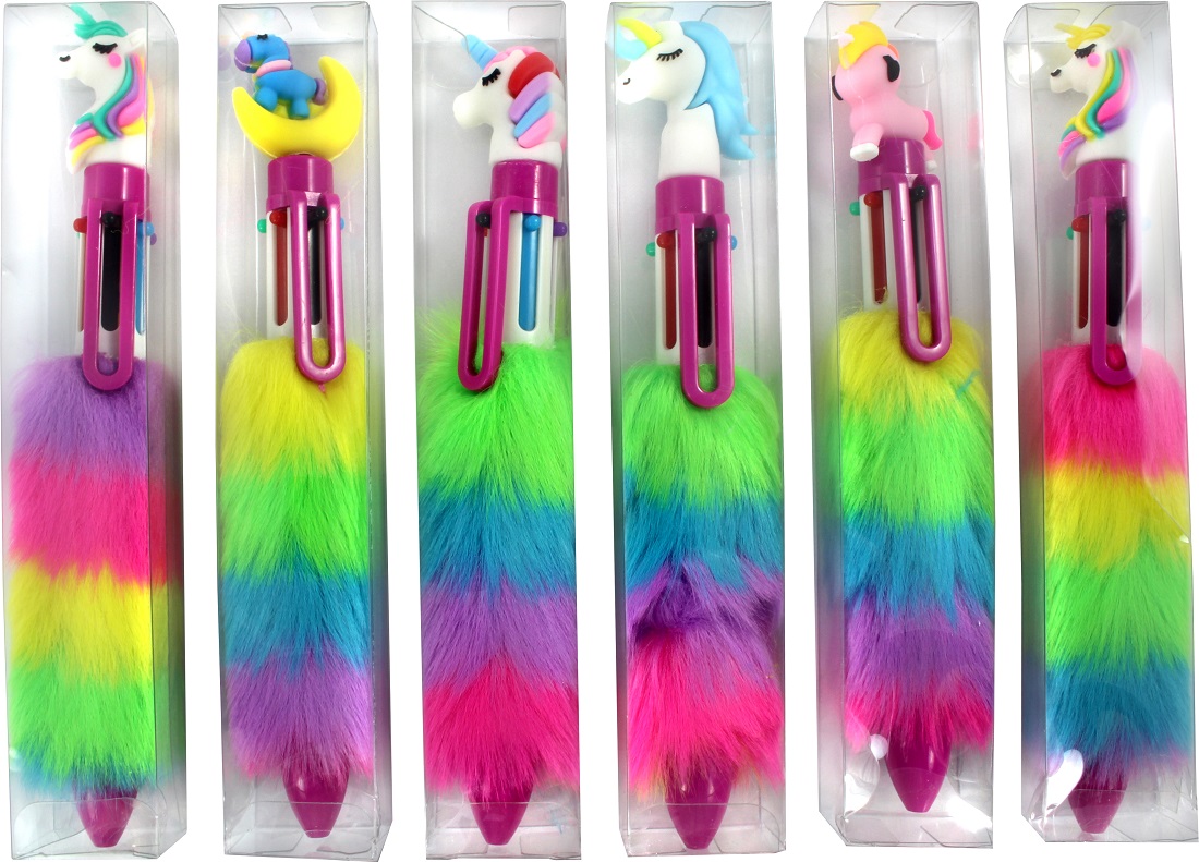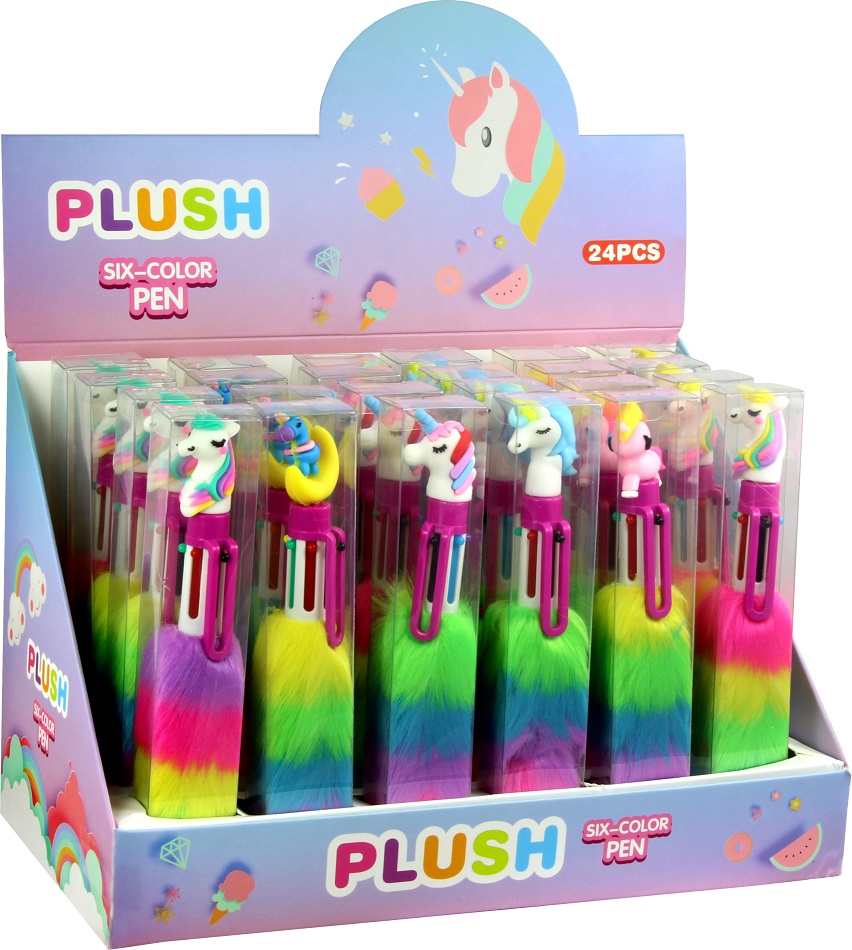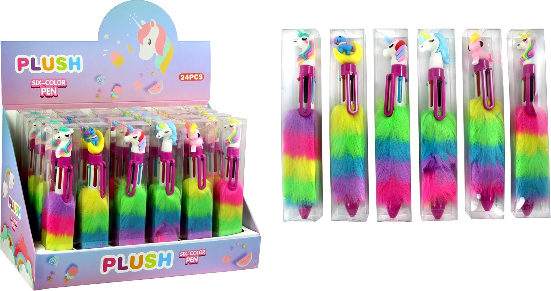 Rainbow Kugelschreiber 6-farbig mit Plüsch Griff und süßen Figuren 6/s in 24er T