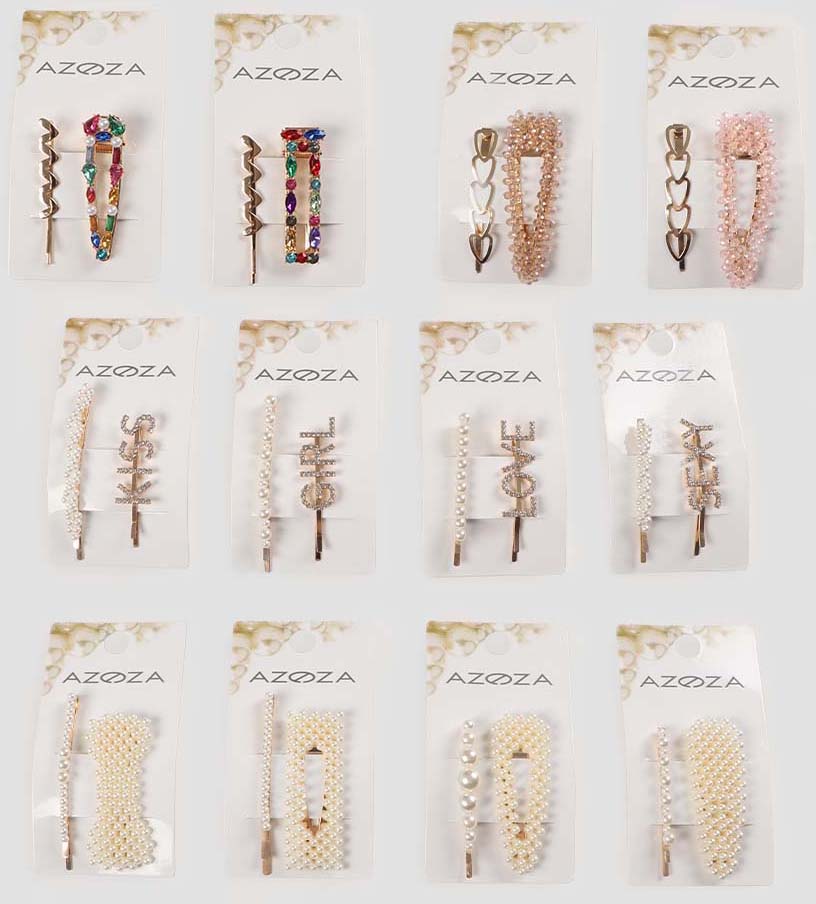 Haarschieber-Spange Sortiment "Perlen/Strass", 4 Ass. 36er T-Dsp.
