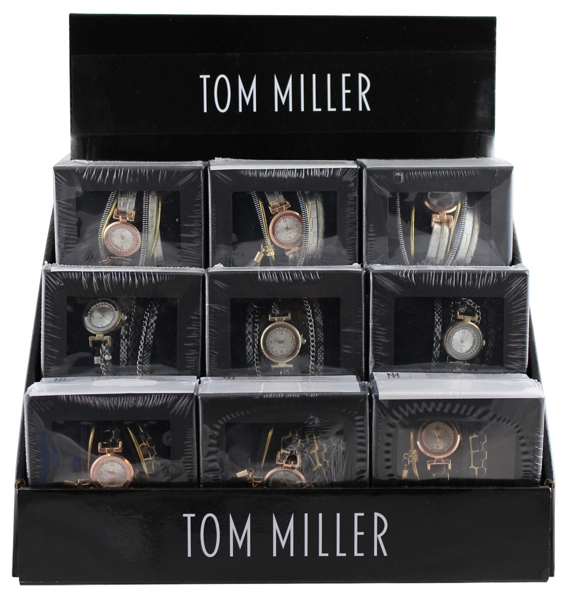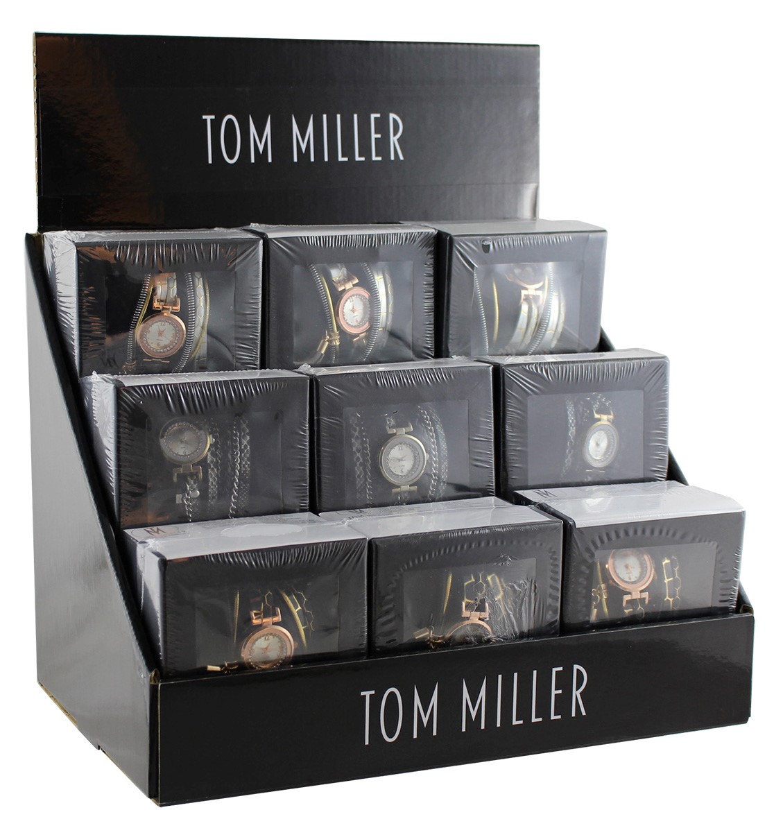 Tom Miller Damen Armbanduhr Geschenkset mit Armband Schmuckset in schwarzer Box,