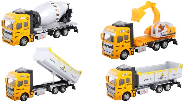 Baufahrzeuge/LKW Metall 3-fach sort. Rückzugsmotor ca.19cm in Sichtbox