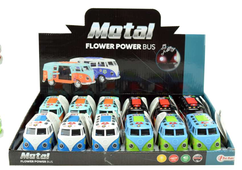 Flower Power Bus Druckguss mit Licht&Sound Rückzugmotor Seiten&Hecktür läst sich öffnen 4/f 12er T-Dsp.