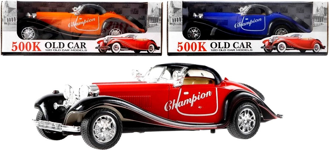 Old Timer Spielfahrzueg 1:20 angelehnt an den Mercedes 500K ca. 25cm 3/s (Rot, Blau, Orange)