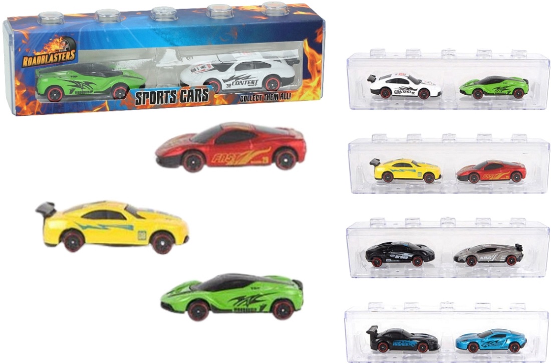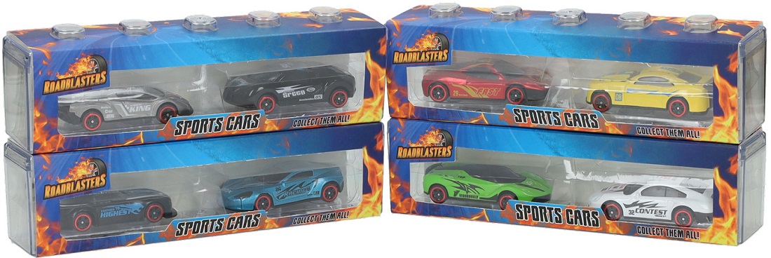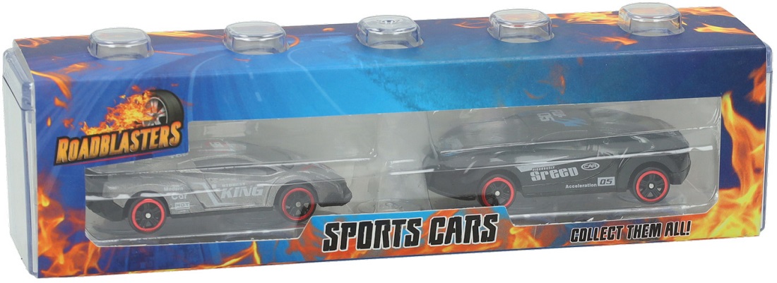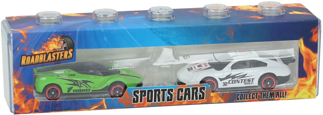 Roadblaster Sportwagen ca. 7cm je Set 2 Autos in stapelbarer Showbox 4/s