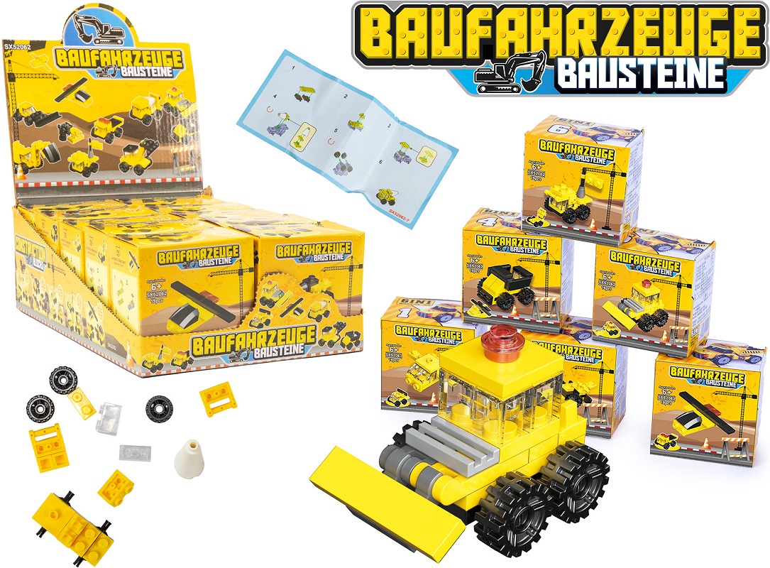 Spielzeug Bausteine Baustellen Fahrzeuge in Box ca. 7 x 7 x 4cm im 10er T-Dsp.