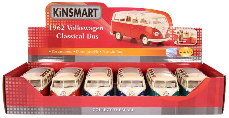 VE:6 VW Bus T1 Classic/Dachfenster aus Bauj. 1967 1:24 3-farben Metall sort. im Dsp.