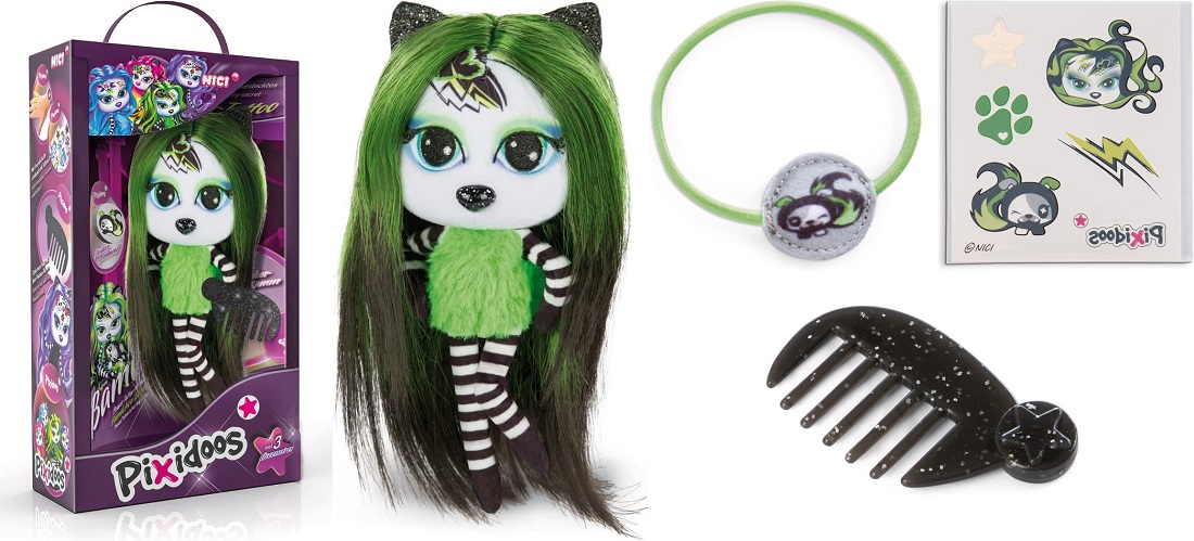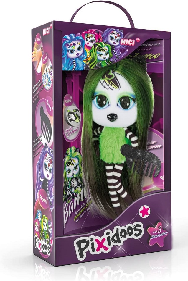 NICI Pixidoos Plüschpuppe, Bami ca. 20cm (inkl. Freundschafts Armband, Tattoo Sticker, Glitzer Kamm)