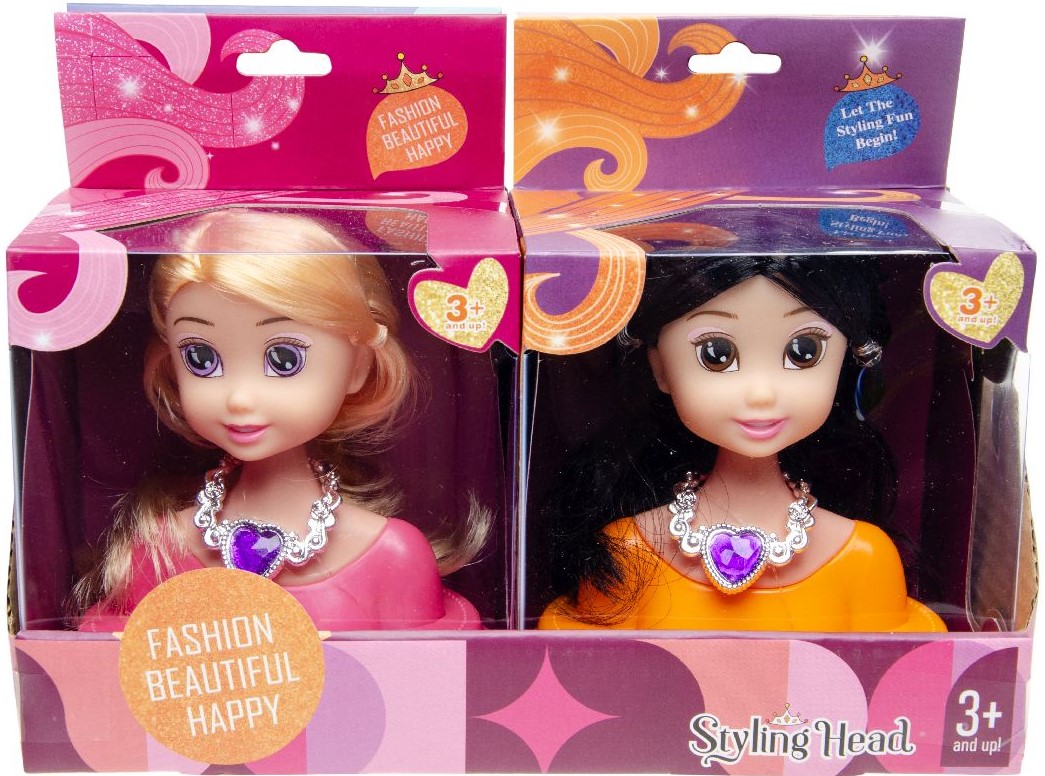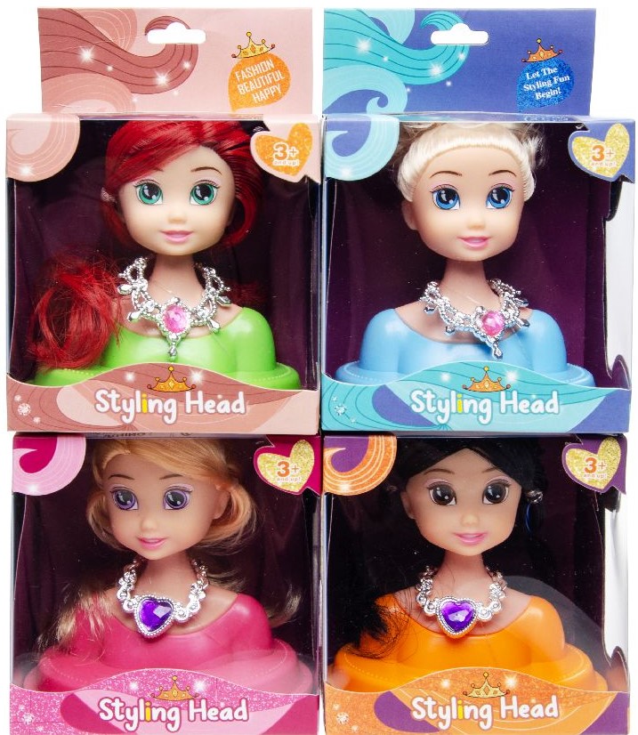 Styling Head Puppen Köpfe in Showbox ca. 10cm 4er T-Dsp.