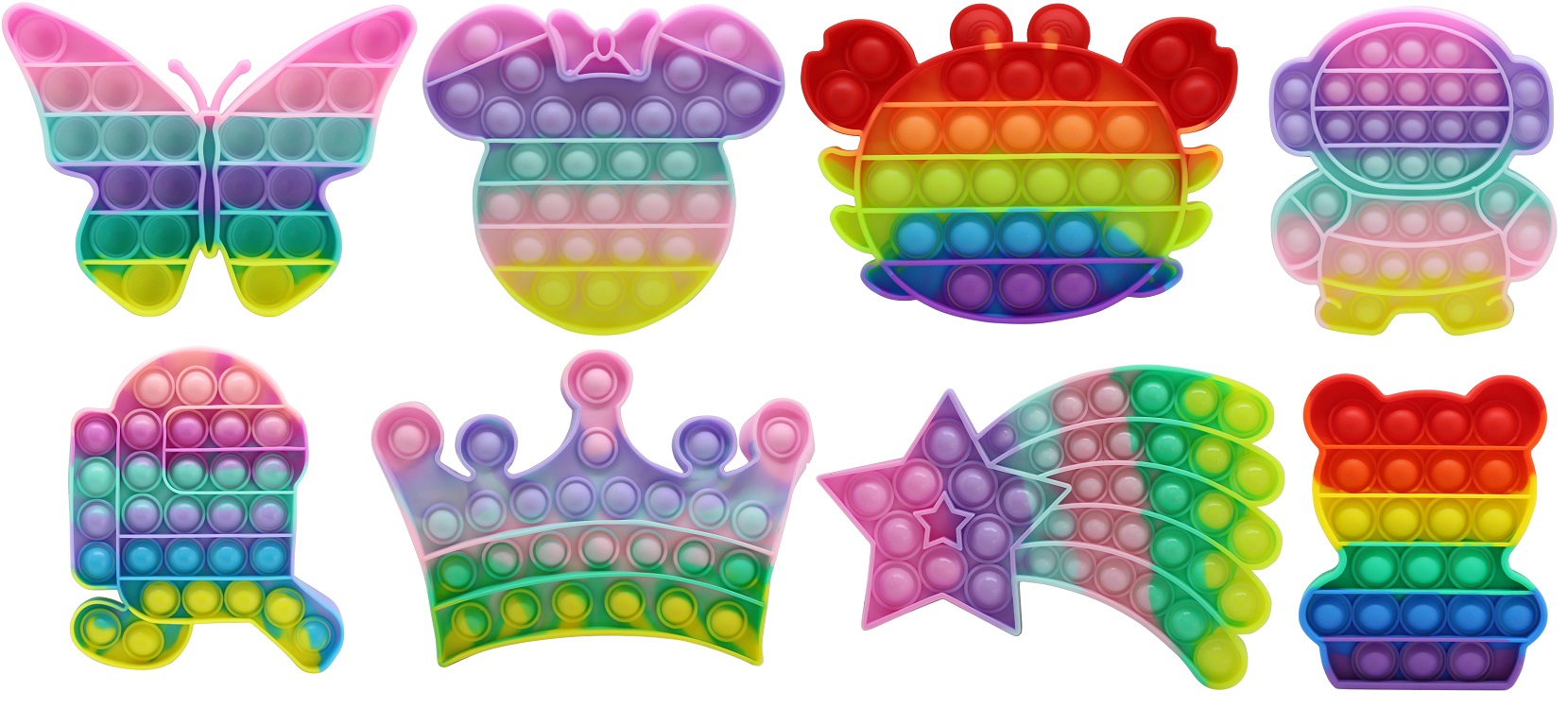 Anti Stress POP IT ca. 14cm 8/s (Schmetterling, Minnie Mouse, Krabbe, Astronaut, Among Us Figur, Krone, Sternschnuppe, Teddy)