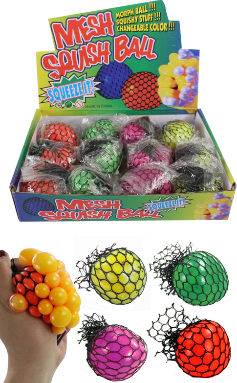 Anti Stress Sqeeze Ball Knautschball im Netz ca. 6cm 4/s im 12er T-Dsp.