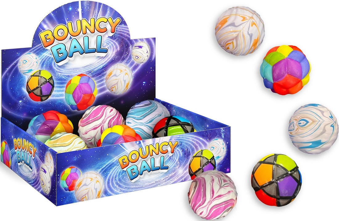 Bouncy Ball "Colorful" Ø6cm 5/s im 12er T-Dsp. (3 Designs in 5 versch. Farben)