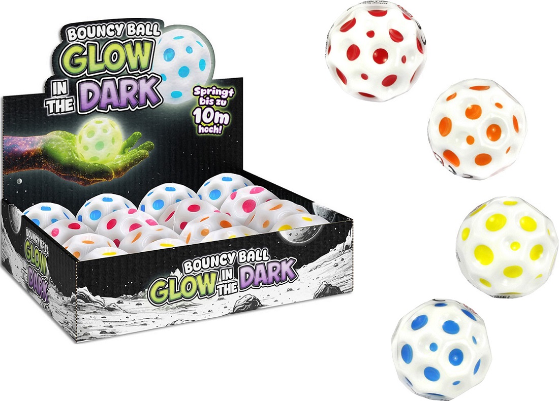 Bouncy Ball Weltraum "Glow in the Dark" Ø6cm 4/s im 12er T-Dsp. (Blau, Rot, Oran
