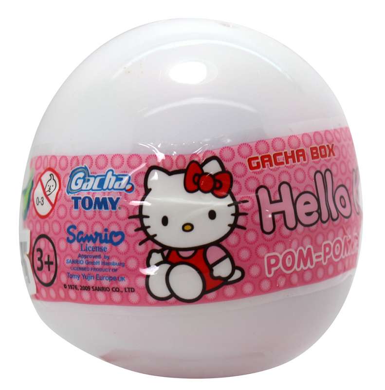 Hello Kitty Überraschungs Kugeln ca. 7cm mit Pom Pom Anhänger im 18er Dsp.