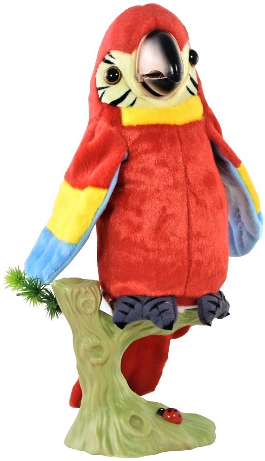 Papagei nachsprechend Talking Bird auf Baumstumpf 3/f (ohne Batt.)ca.22cm (ca. 30cm mit Baumstumpf)