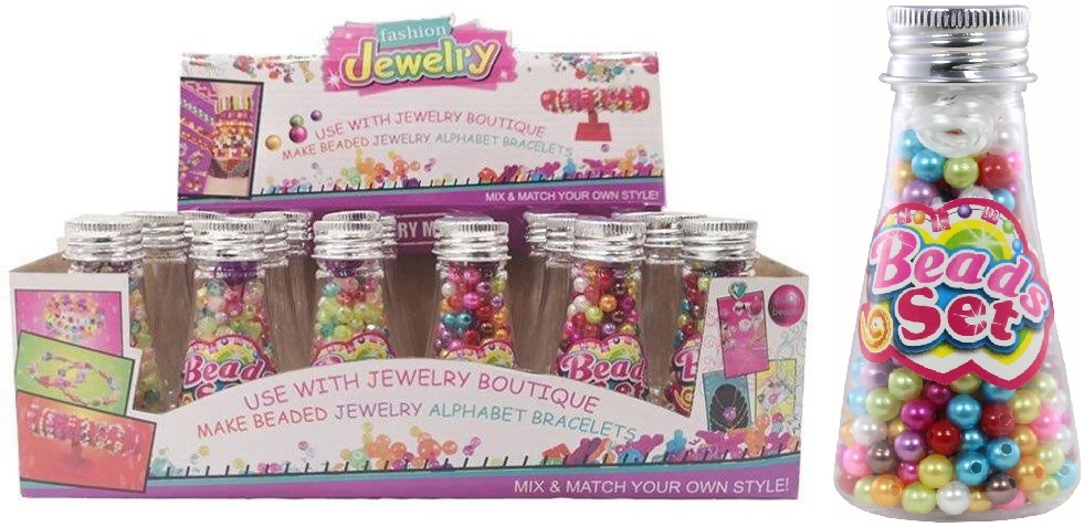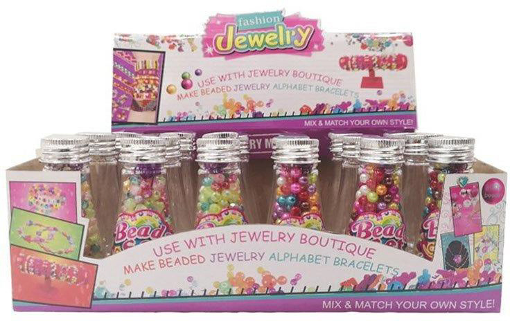 Perlenset zum Schmuck selber machen in kleinen Fläschchen ca. 9cm in 24er T-Dsp.