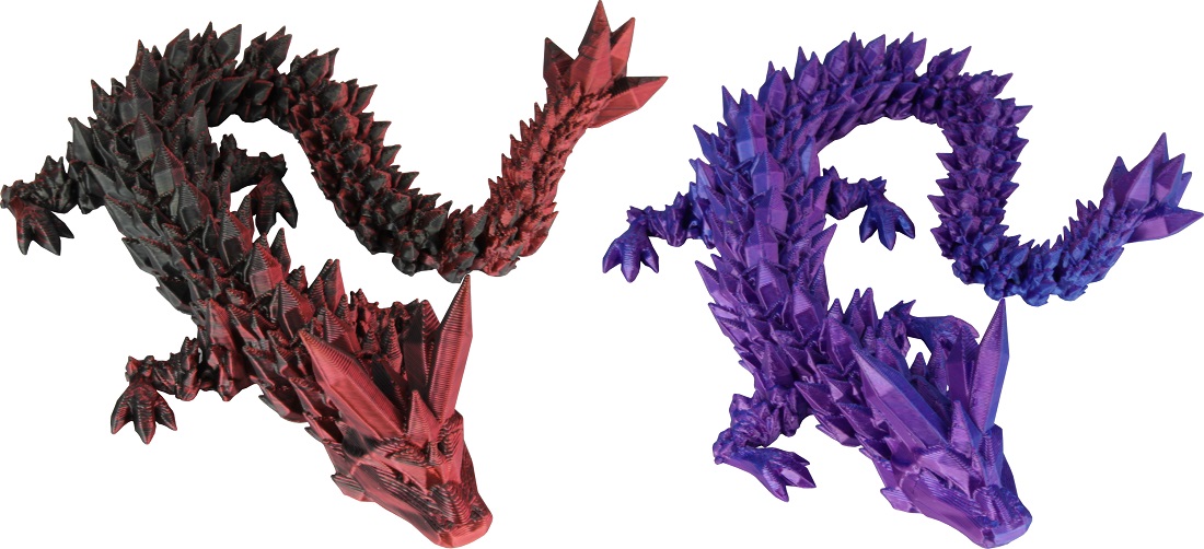 Spielzeug Drache aus 3D Druck Technologie Kristalldrache ca. 30cm mit vollbeweglichen Gelenken & holgrafischer Farbe 2/s (Lila/Blau, Rot/Schwarz)