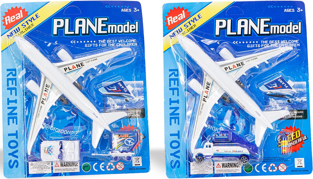 Spielzeug Flugzeug Set mit Flugzeug und kleinem Flughafenfahrzeug, ca. 29 x 21cm auf Blisterarte