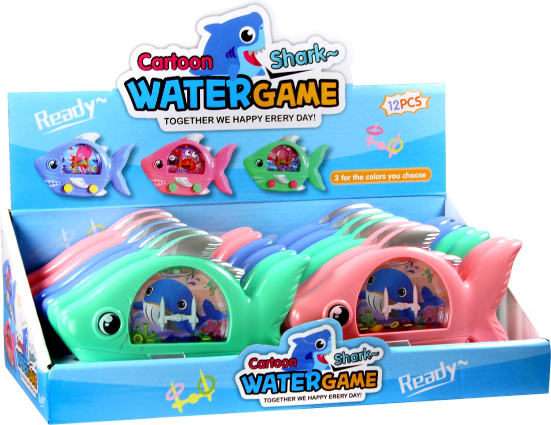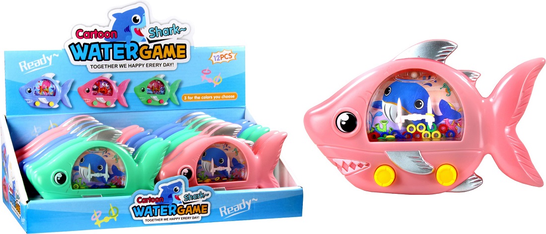 Watergame Cartoon Shark Geschicklichkeits-/Wasserspiel 3/s (Grün, Lila, Pink) in 12er T-Dsp.