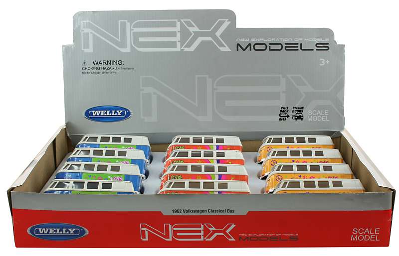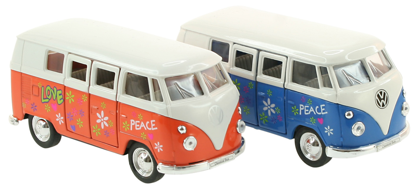 Welly VW Bus Flower Power, Rückzugmotor, Türen zum Öffnen im 12er T-Dsp