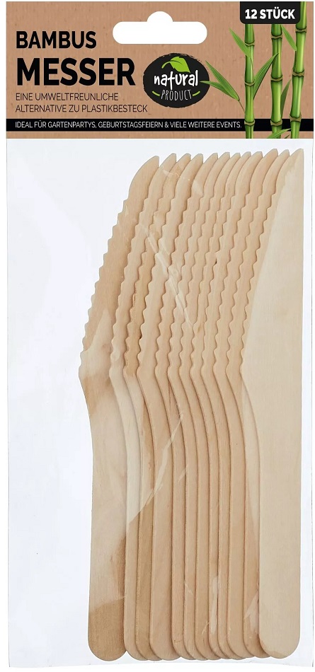 Party Besteck Messer aus Bambus ca. 16cm 12er Set mit Headerkarte