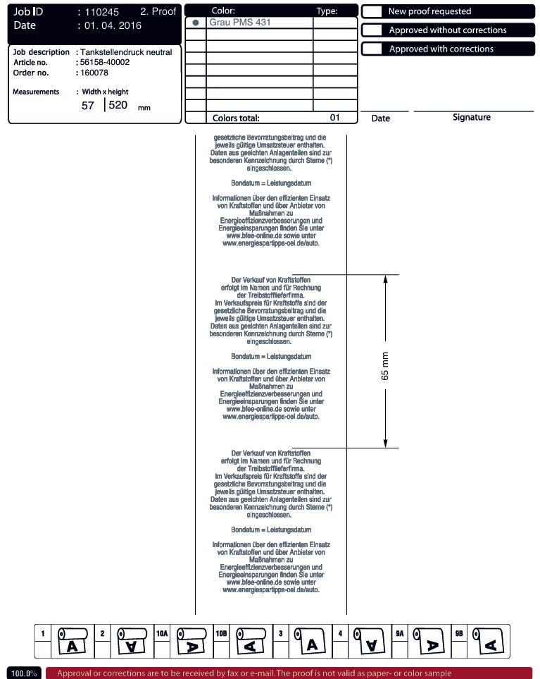 Thermo Bonrolle mit neutralem Tankstellentext 58mm x 50m x 12mm BPA-Frei 50 Stk. im Karton