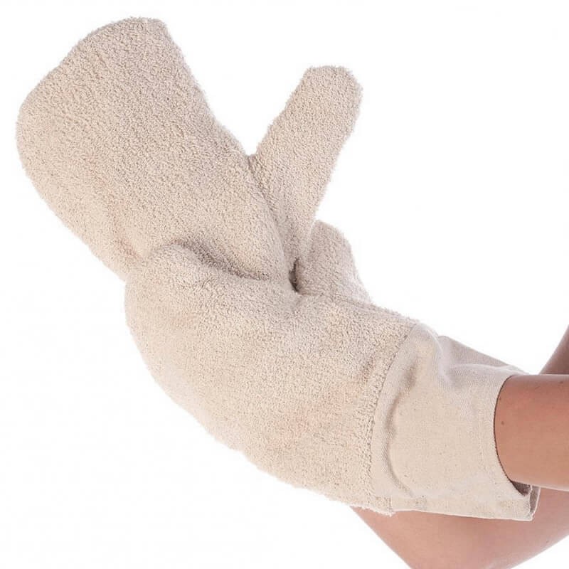 Backofen-Fausthandschuhe ca. 31cm in weiß Schlingengewebe aus Baumwolle und Frotee gegen Kontakthitze bis 50°C