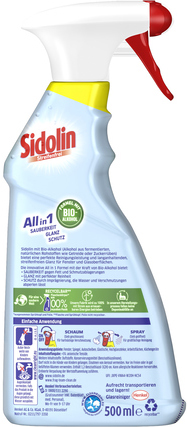 Sidolin Glasreiniger Zitrus in 500ml Sprühflasche, Streifenfrei, All in 1 Sauberkeit/Glanz/Schutz