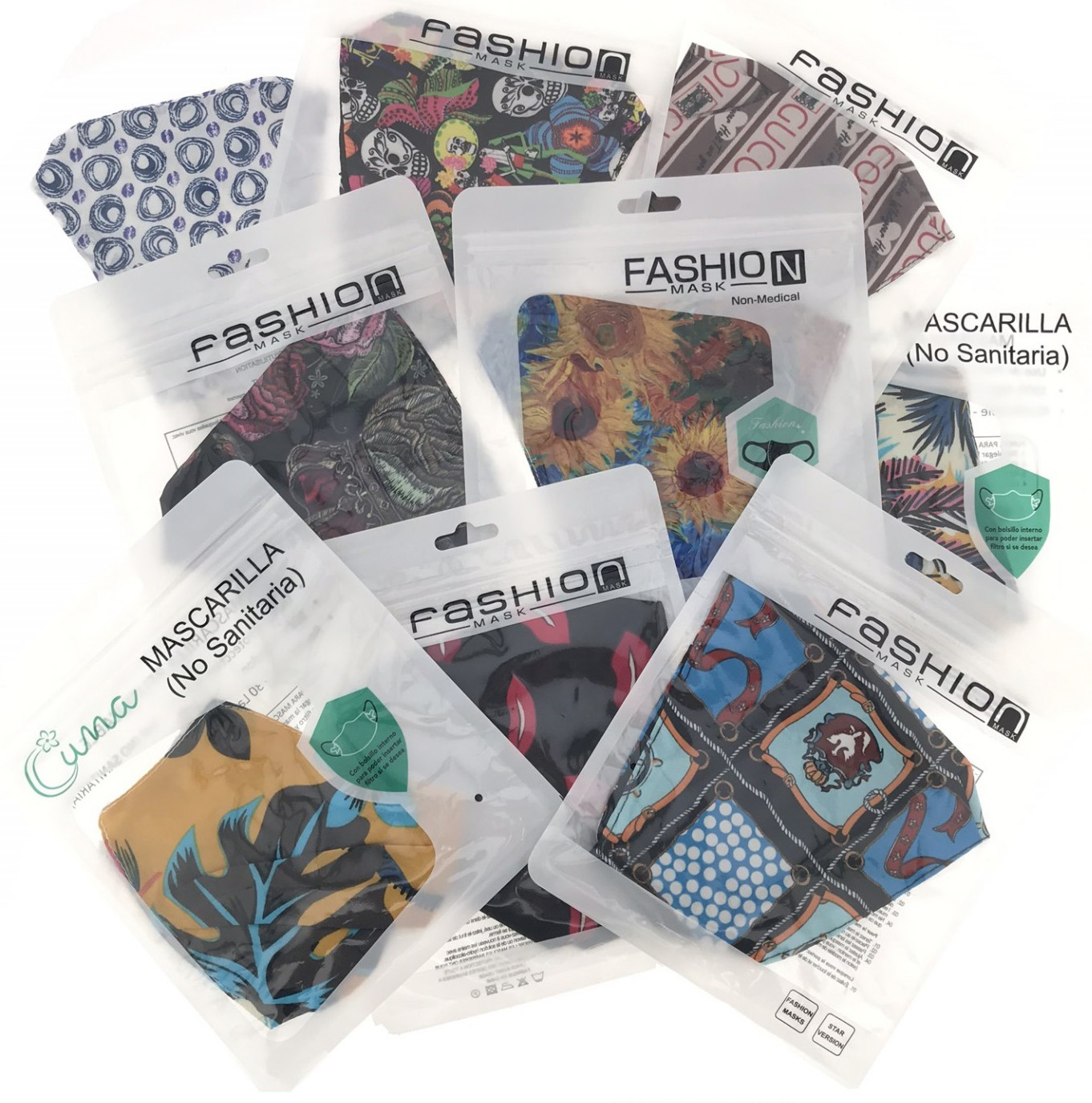 Stoff Masken mit Design als Accessoires Waschbar MIX sortiment in Polybag/Einzelpack