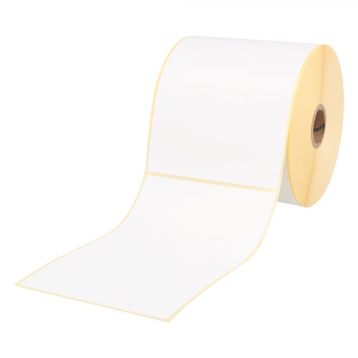 Thermodirekt-Versandetiketten für Desktopdrucker, Thermo-Eco Papier, unbeschichtet, weiß, matt, B:100 mm, H: 150mm, Trägerperforation, 1-bahnig 104 mm Rollenbreite, außen gewickelt, 1 Zoll (25,4 mm)-Rollenkern,300 Etiketten auf 1 Rolle(n)