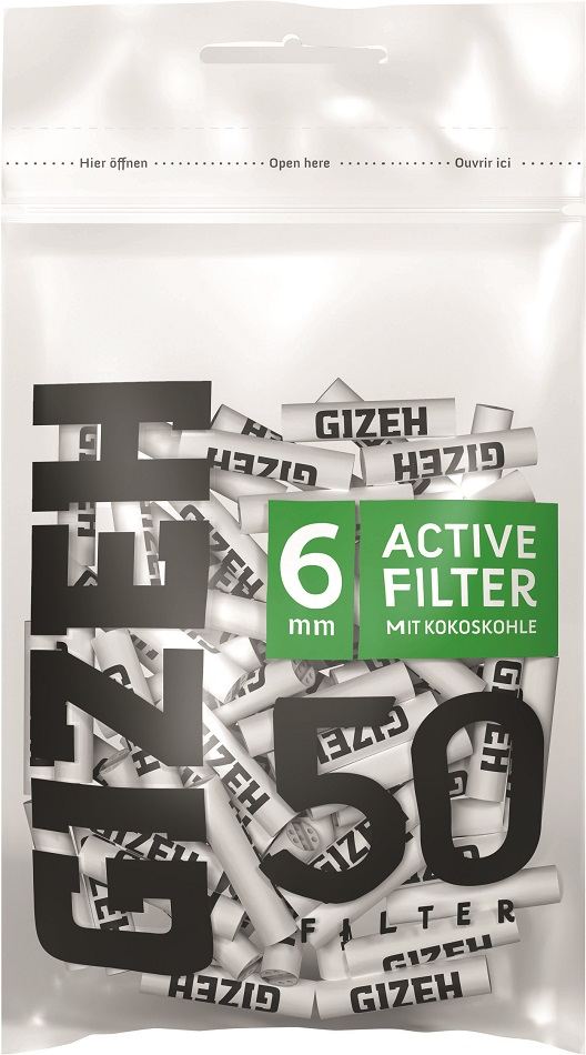 GIZEH BLACK® Active Kohle-Filter Keramik-Kappen 6x27mm 50er Beutel im 10er T-Dsp