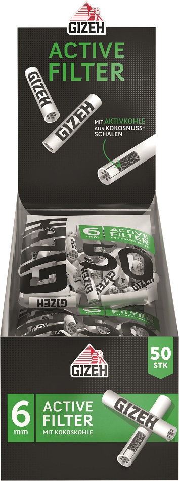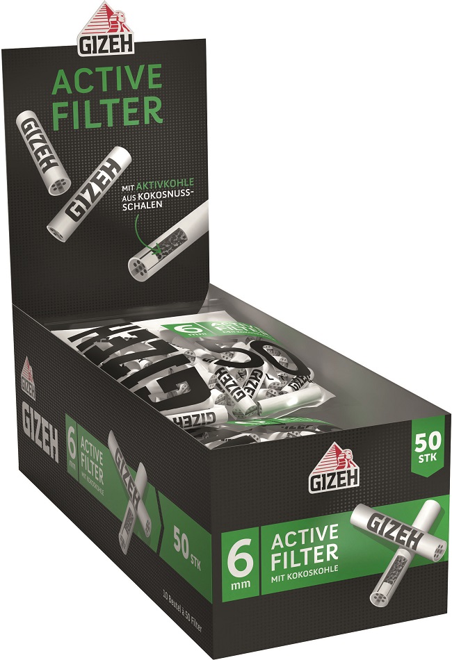 GIZEH BLACK® Active Kohle-Filter Keramik-Kappen 6x27mm 50er Beutel im 10er T-Dsp.