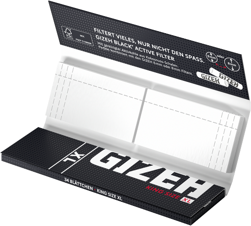 GIZEH BLACK® KING SIZE XL +TIPS 26 Heftchen á 34 Blättchen & 34 Tips, 9mm breite