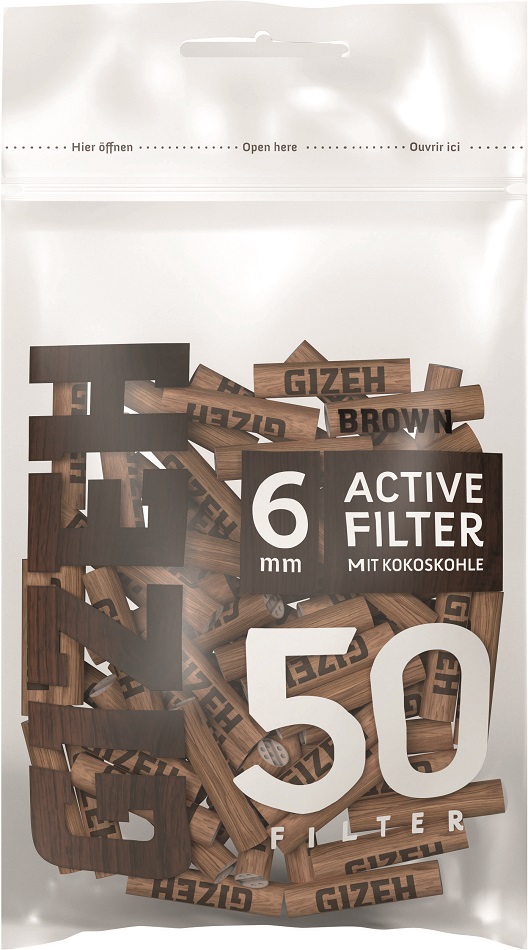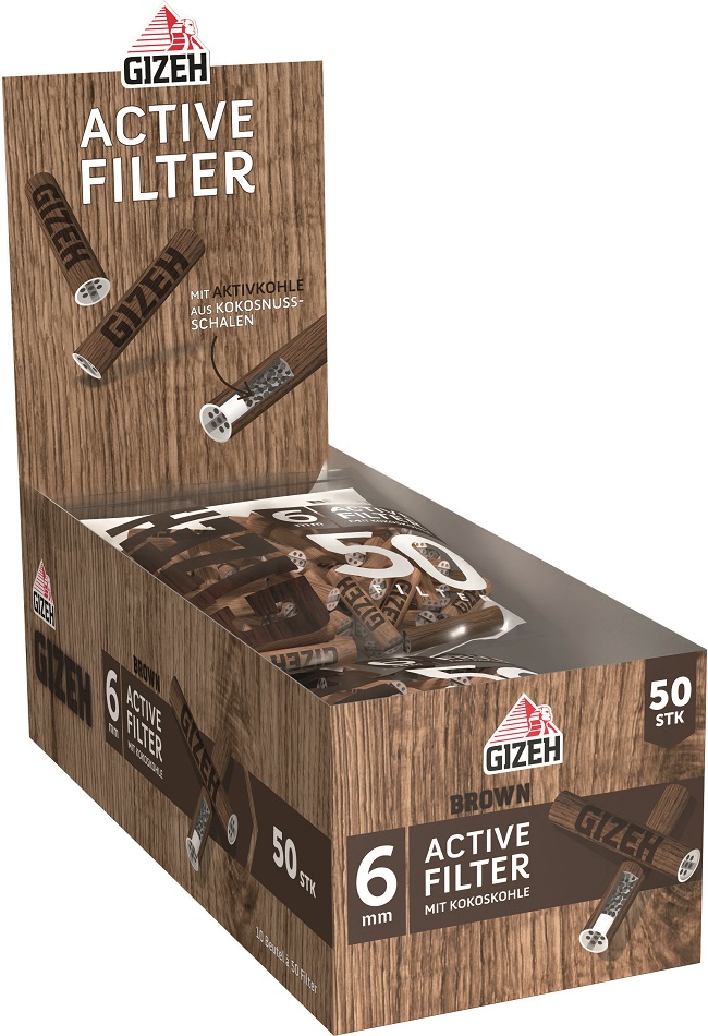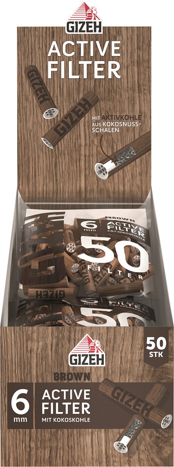 GIZEH BROWN Active Kohle-Filter Keramik-Kappen 6x27mm 50er Beutel im 10er T-Dsp.