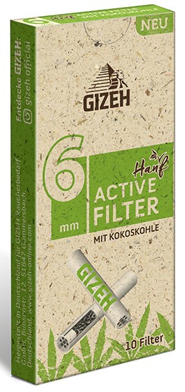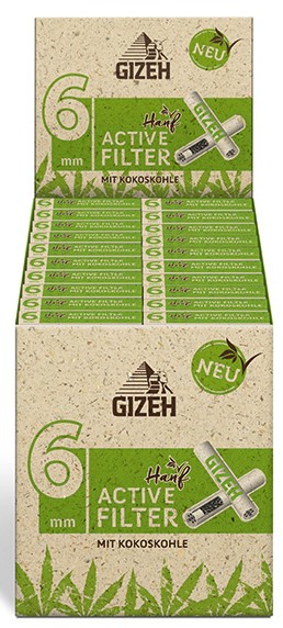 Gizeh Hanf Active Filter mit Kokoskohle 6mm á 10 Filter 20er Display