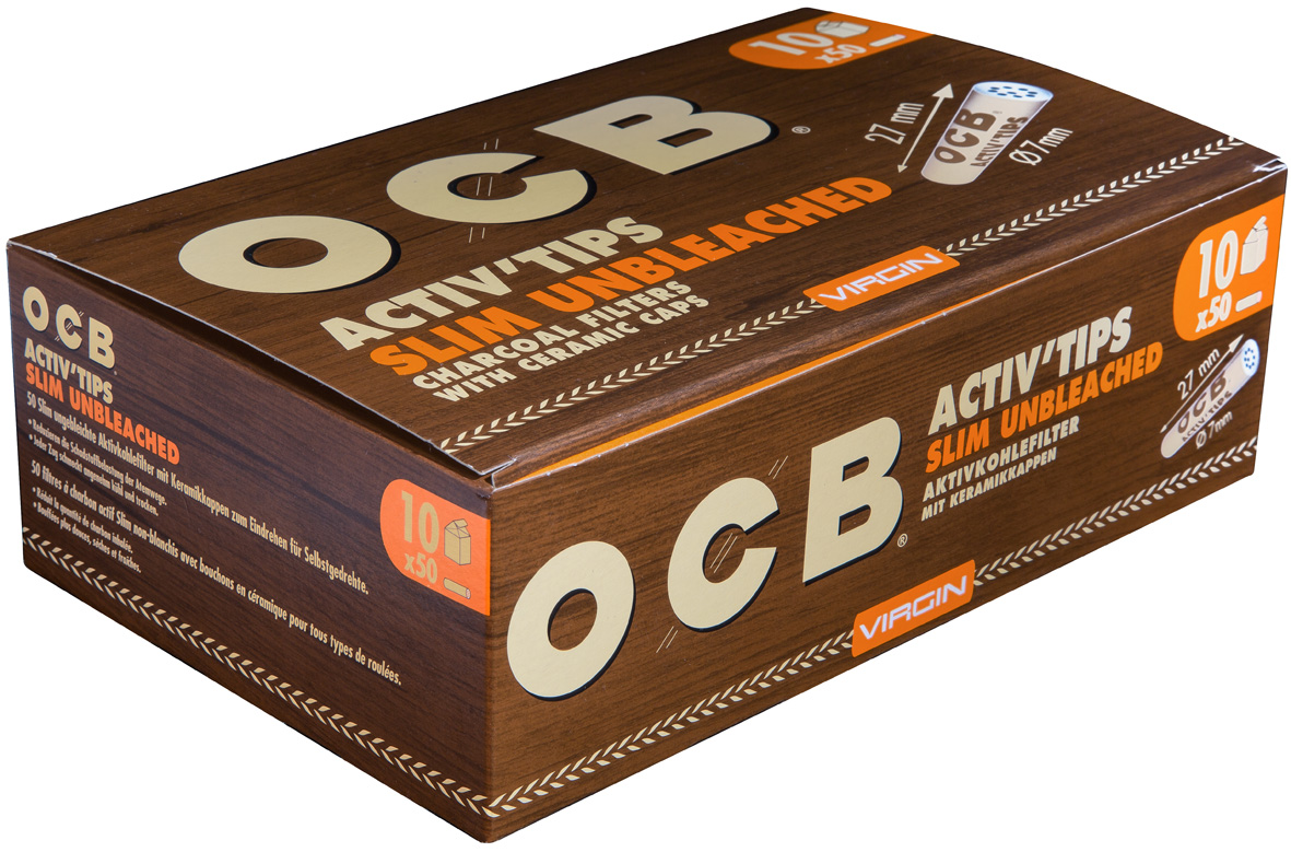 OCB Activ Tips Slim Unbleached Virgin 7mm Aktivkohlefilter mit Keramikkappen 27x7mm 50st. in Packung