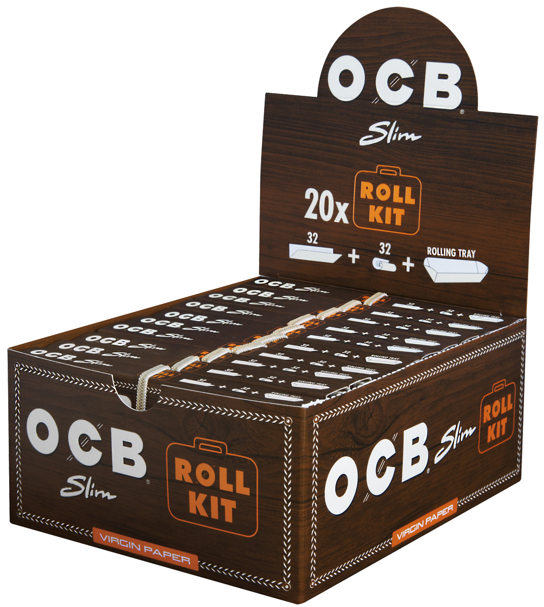 OCB King Size Slim Roll Kit Unbleached Virgin Paper 32xKing Size Slim Paper + 32 Tips + Rolling Tray 20er T-Dsp.