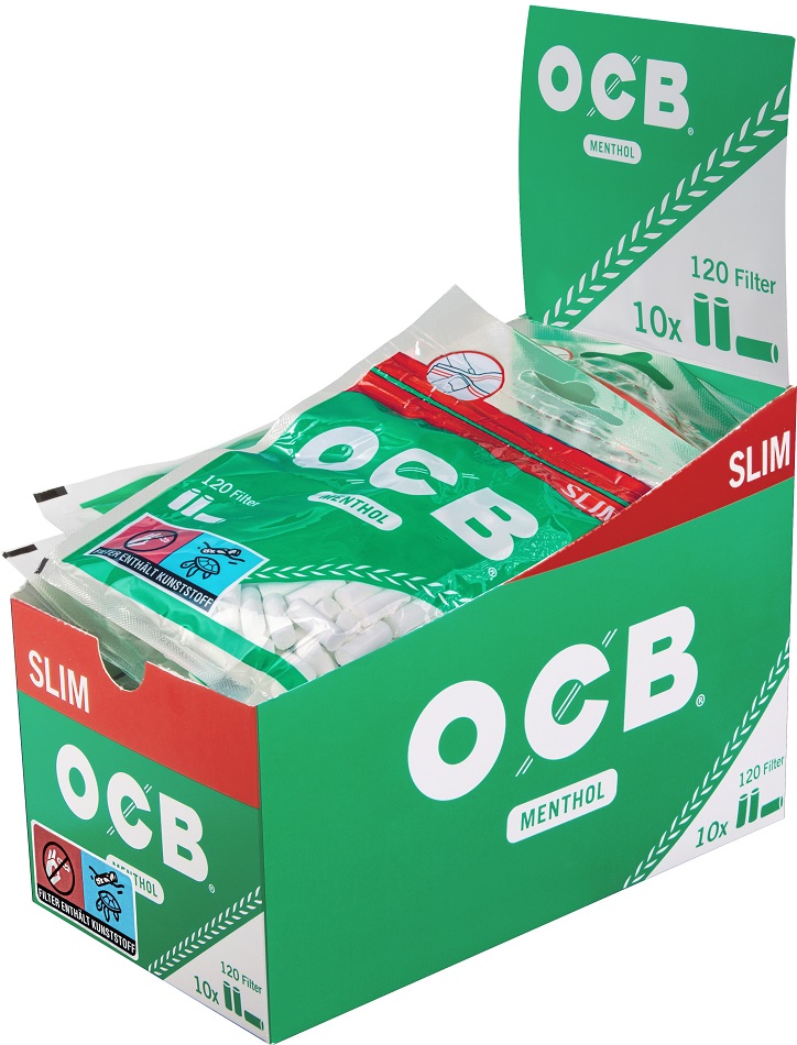 OCB Slim Filter Ø 6mm Menthol mit entnahmelochung(Grün)120Filter 10er T-Dsp.